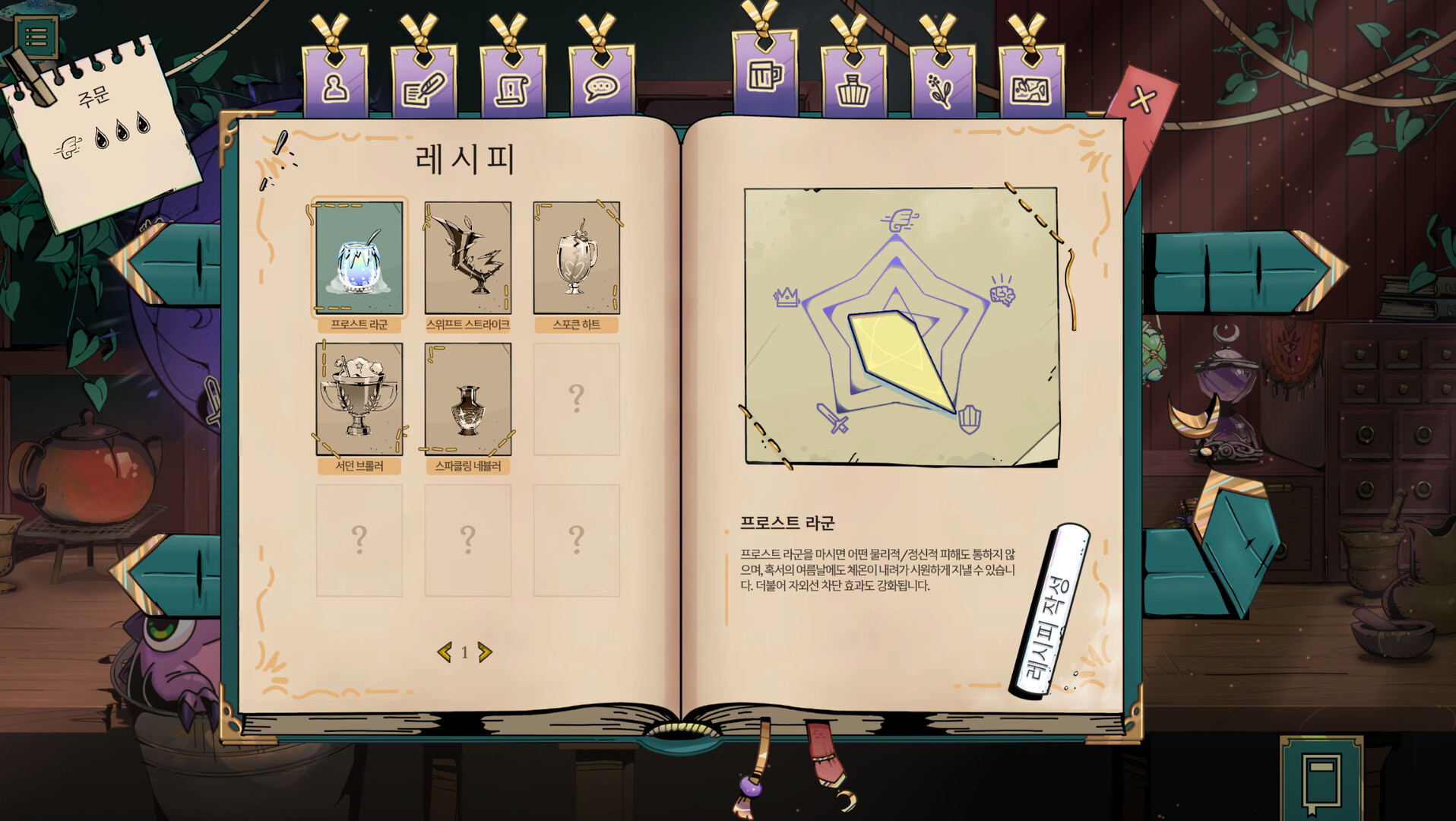 당신은 축복받아 특별한 재능을 가졌습니다. 바로 누군가의 운명에 영향을 미칠 수 있는 마법이 깃든 음료를 만들 수 있는 능력이죠! 당신은 왕국 전역에 모험가의 여정을 도와주는 것으로 유명합니다. 들끓는 분노나 날뛰는 검의 물약 등을 만들어보세요. 당신의 실력을 발휘하여 모험가들을 그들의 운명으로 인도하세요.