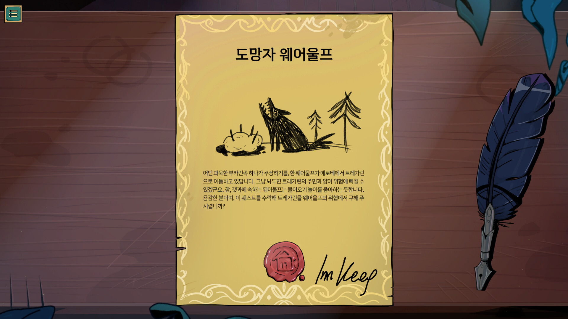브금 아트 맘에 드는데.... 한글 번역이 10% 부족해...번역이 부족하니까 몰입도 떨어지고... 게임플레이말고 나머지는 번역이 안되있어.... 현상금이랑 방명록도 번역이 안되어있고 겜이 대화가 대부분인데... 번역이 부족하면 큰데 ㅜㅜ 번역이 부족해서 먼내용인지 약간 핵갈려