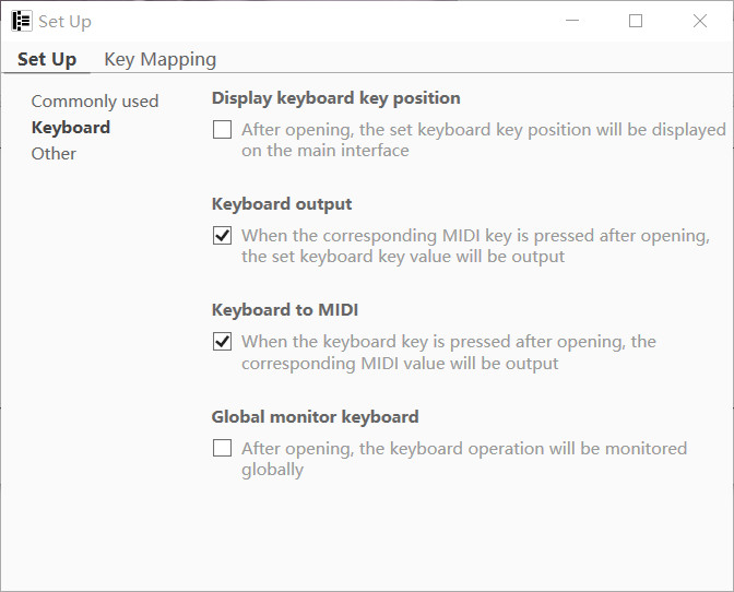 When your computer is connected to multiple MIDI devices, please select the correct MIDI port for listening. Double click the corresponding device in the [Settings] ->[Commonly used] ->[MIDI port] list to achieve monitoring.