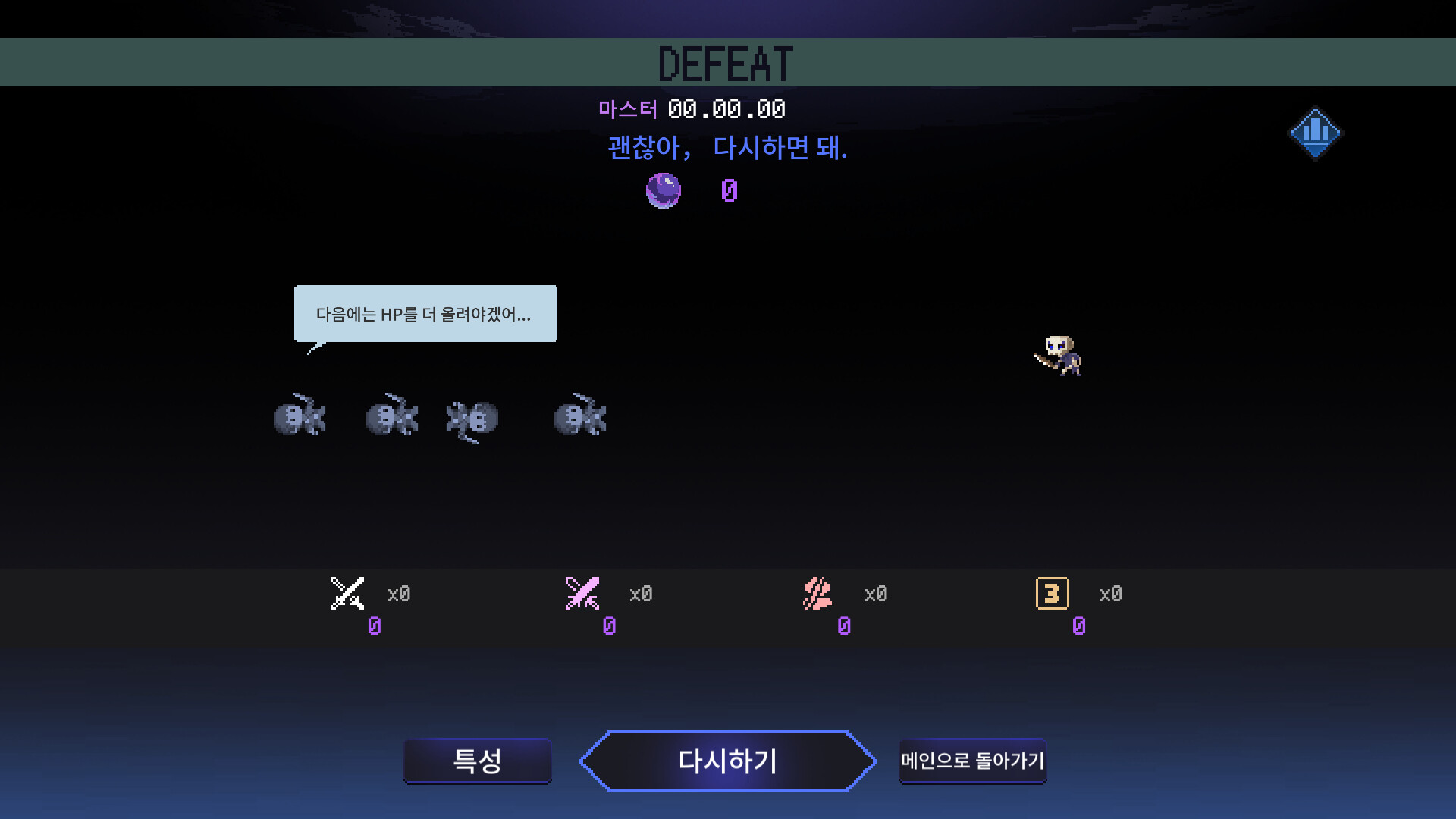 특성 다찍어가지고 할게 없어요. 아직 못깬 업적 깨고 있어요. 포인트 쓸 곳 좀 만들어 주세요. 로그라이크중에 제일 오래한것 같아요.