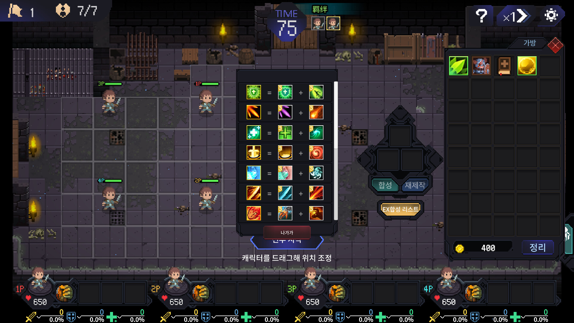 팀파이트 매니저 같은 오토 배틀 류 게임 좋아하시는 분들은 재미있게 플레이하실 거 같아요 깔끔한 도트 그래픽으로 눈이 아프지 않고 배속 기능도 있어서 빠른 진행이 가능해요 난이도는 쉬움 모드부터 시작하며 해당 난이도를 클리어해야 다음 난이도 진행이 가능합니다 가격이 저렴하고 게임도 가볍게 하기에 좋아 시간 날 때 틈틈이 하기 좋은 게임이에요 👍👍 단, 많은 종류의 스킬 설명을 읽거나 이해하는 게 귀찮거나 싫은 분들은 맞지 않으실 거 같아요 * 상점에 번역이 되지 않은 부분이 있긴 하나 게임 진행에 지장은 없습니당