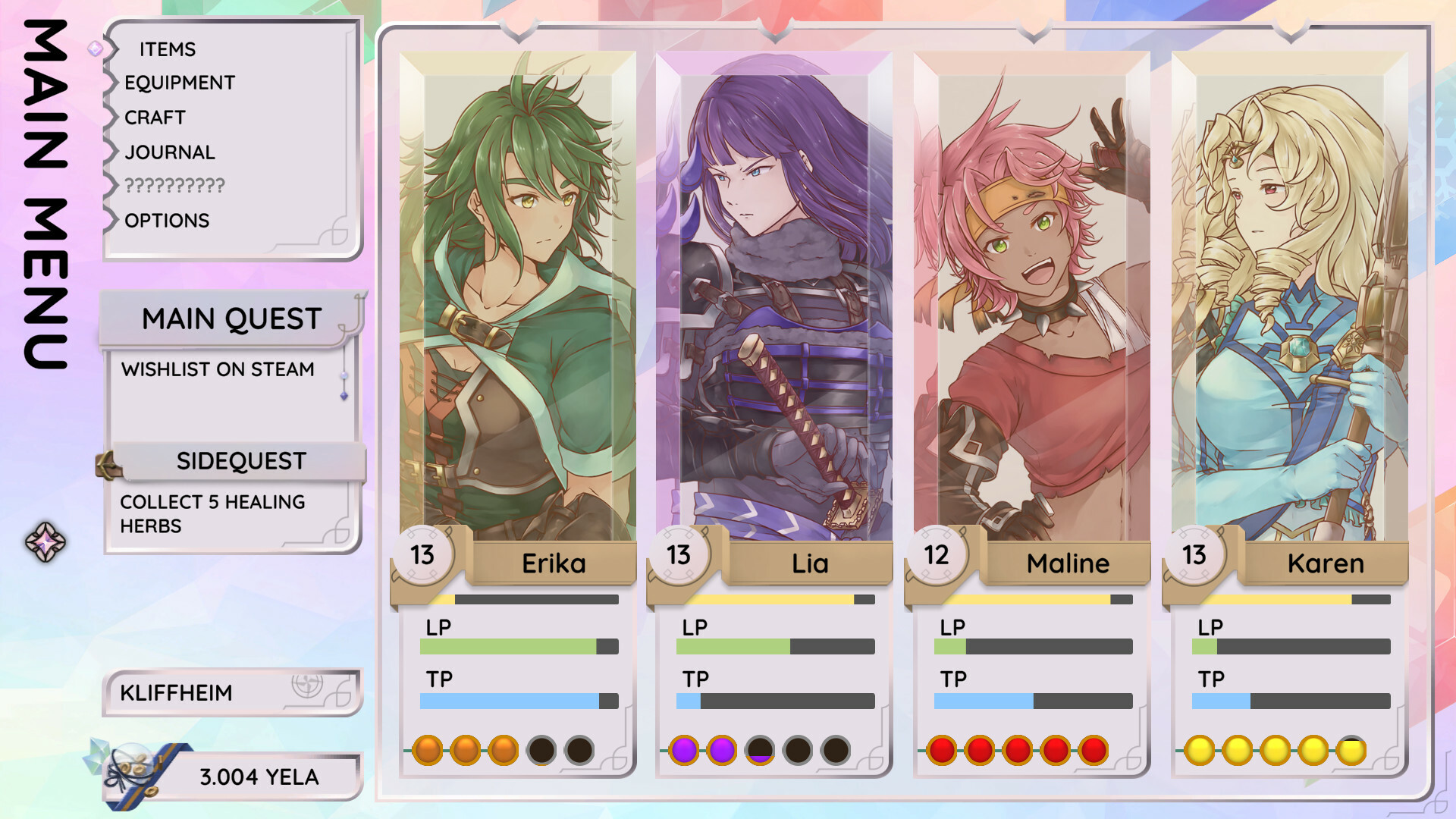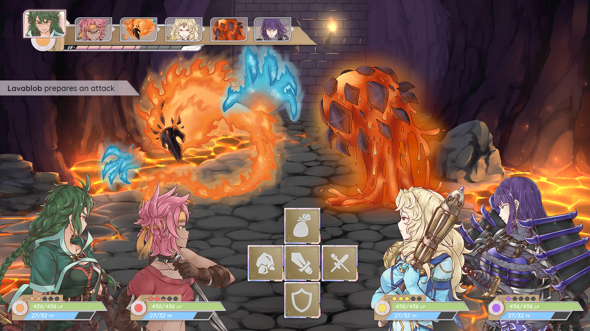 In the Exploration section, all 4 protagonists are in the party and you can explore Clear Falls, a waterfall area. Here you can test the girls' elemental powers and skills in more challenging battles, uncover secrets using their overworld abilities, meet your first NPCs and defeat a secret boss.