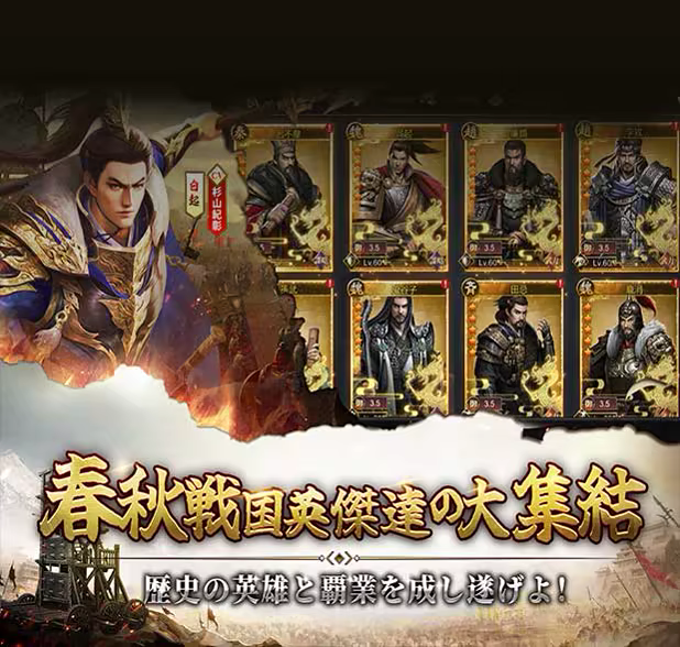 ▼春秋戦国時代の有名人物を育成し、自分だけ武将編成を作り、天下統一を目指そう!