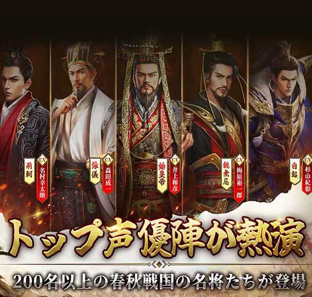 ▼始皇帝や白起など春秋戦国時代の有名人を井上和彦さん、小清水亜美さん、森田成一さん、杉山紀彰さん一流声優が熱演!