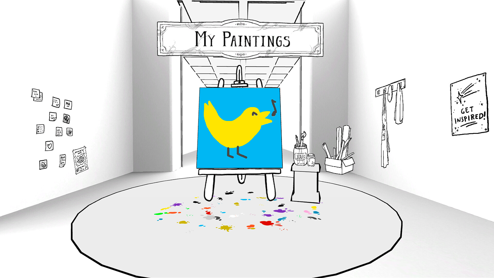 - Unfettered access to The Studio: a space just for you where you can view all of your own paintings and all of the paintings you have liked, and paint upon 3 draft canvases that allow you to save paintings and work on them later before submitting.