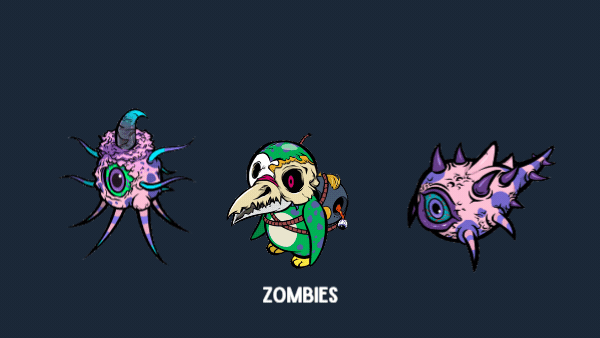 좀비들은 게임이 진행되면서 계속 땅에서 생성되어 나와 상대방을 공격합니다. 좀비를 파괴하고 레벨을 올리거나 좀비를 제어하고 상대방을 향해 공격하도록 만드세요.