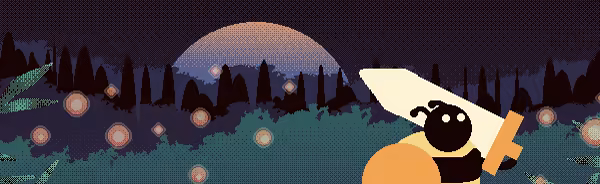 De-saturated pixel art with big chunky outlines
