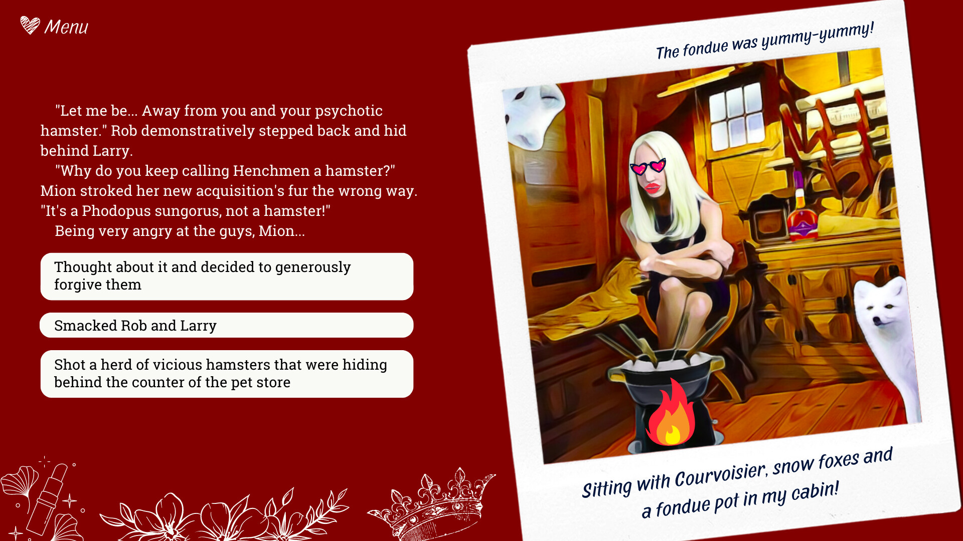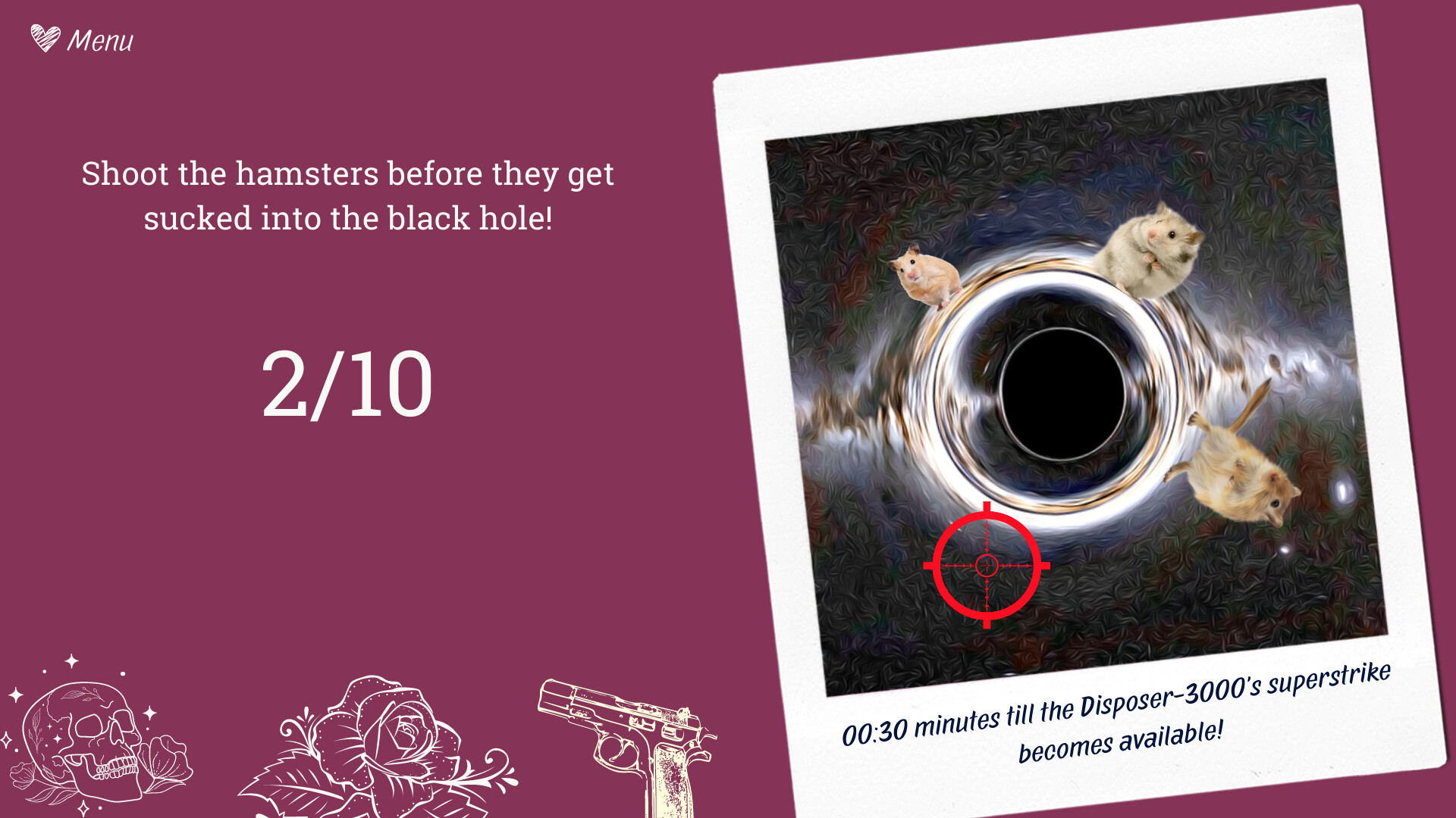 Take control of the plot by clicking buttons in the dialogue. Use your mouse to destroy the evil hamsters.