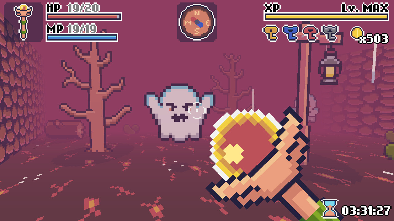 Now, our heroine must embark on a quest to overcome the curse and change back into to her old self again. During your journey you'll need to find the four magic staffs in order defeat the Fallen Witch, and thus recover your human body.