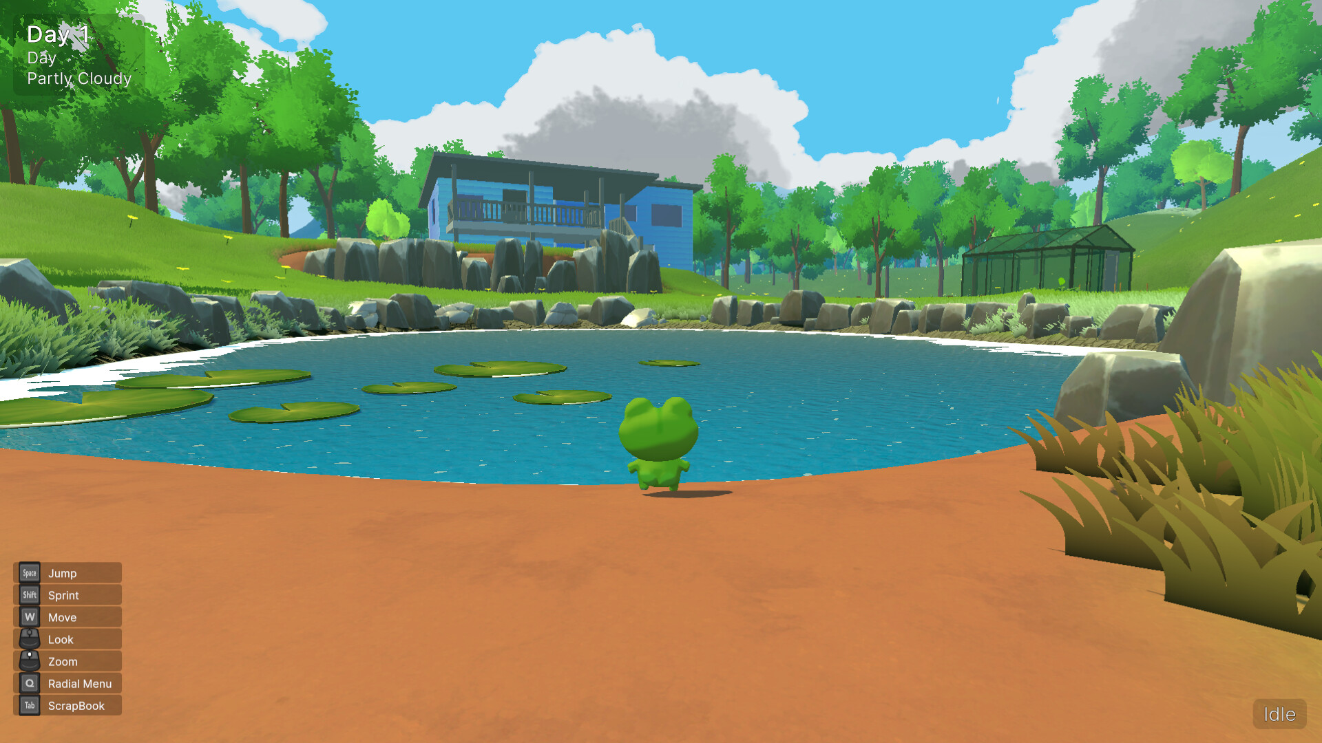 Puddle Pals is a cozy-chaotic multiplayer game about being a small frog in a big backyard.