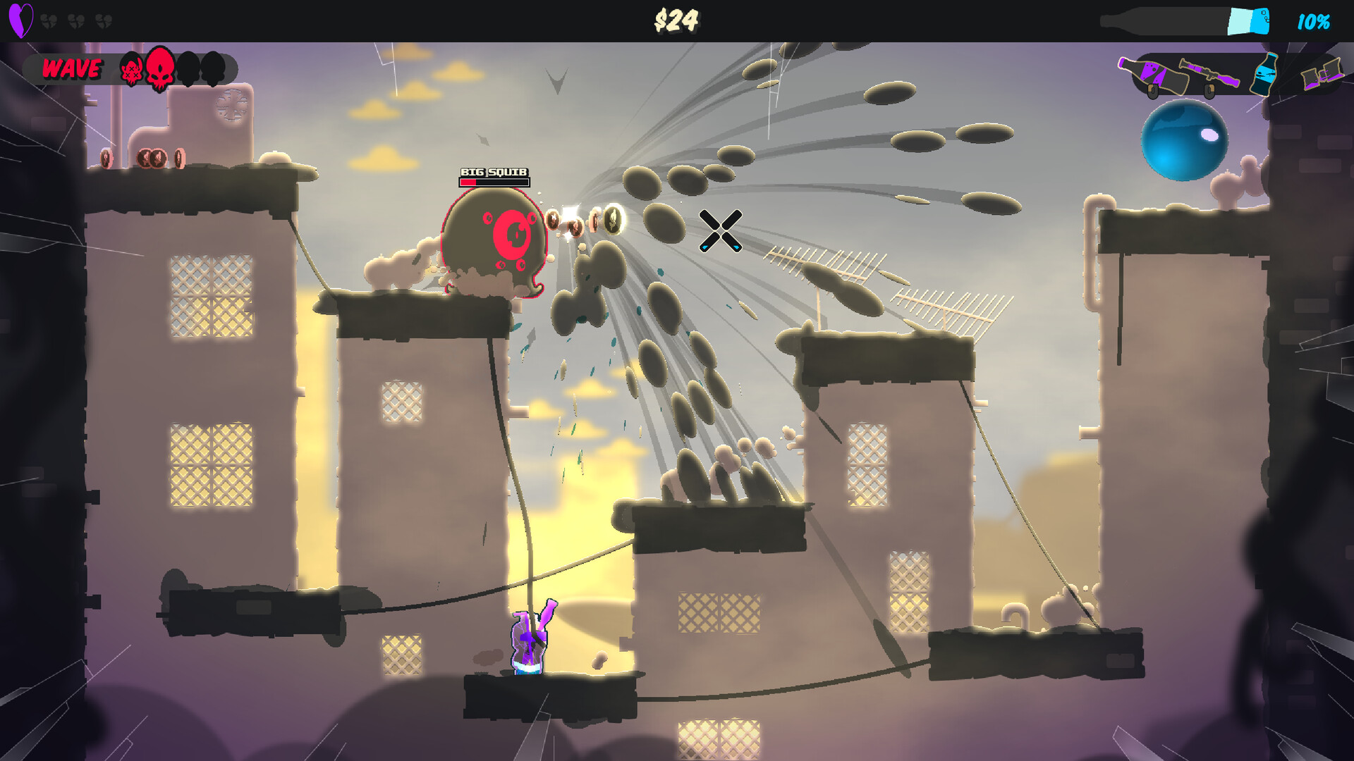 Captain Soda is a vibrant and satisfying arcade shooter about fighting an alien apocalypse where your strongest weapons just so happen to be Soda. Play as the main character, a soda-based hero named Captain Soda, and throw-down the money-abducting invaders with a loadout of weapons such as the Bubble Sub-machine Gun and Bottle Rocket Launcher, plus your favourite beverage. Your loadout is not complete without some accessories like the Double Jump Boots or Wrapper Cape to fit your playstyle and help you take on the apocalypse in over 25 levels and 3 unique areas.