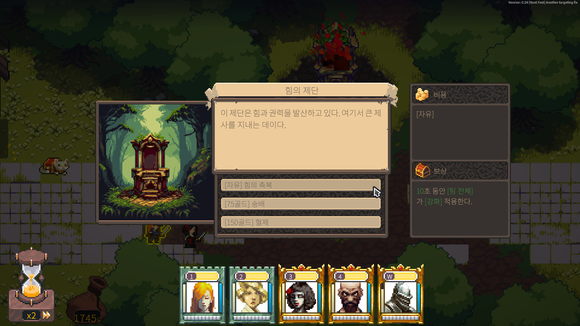 합성 불가한 용사들의 모험 (매일 업데이트되지는 않으며, 작성자가 원할 때마다 업데이트됩니다.) [1일차] 주점에서 시작하여 인접한 지역들을 이동하는 게임입니다. 각 지역에는 업그레이드 항목들이 존재하여 보유한 자원을 소모하여 진행할 수 있습니다. 공격력이나 체력 증가, 획즉하는 재료 증가나 새로운 영웅 고용 가능 등의 다양한 옵션들이 존재하죠. 2개 이상의 업그레이드를 제공하는 경우도 존재합니다. 지역간의 이동에는 이벤트들이 발생하여 이를 해결해야 나아갈 수 있습니다. 영웅 모집의 경우에는 3명의 랜덤한 영웅들이 랜덤한 등급으로 등장하고 그 중에서 1명을 선택할 수 있습니다. 최대 6명까지 파티를 구성할 수 있으며, 다른 영웅을 모집하고 싶다면 기존의 영웅을 방출해야만 하죠. 영웅마다 고유한 공격 능력과 스킬, 궁극기를 보유하고 있으며, 등급에 따라 1~3개의 태그를 가지고 있습니다. 태그는 영웅들의 콤보 효과 활성화에 필요하며, 요구하는 3가지 태그의 영웅들을 보유하고 있다면 효과가 활성화됩니다. 전투는 적들이 우선적으로 배치되어있고, 영웅들은 지정된 슬롯 내에 배치하여 시작할 수 있습니다. 힐러나 원거리는 후방으로 배치하고 근거리나 탱커는 전방에 배치하여 어느정도 안정적인 진형을 갖추어 전투를 시작할 수 있죠. 전투가 시작되면 적을 타켓팅하여 이동하고 각자 능력에 맞춰서 전투를 수행합니다. 일반 공격과 스킬은 자동으로 발동하며, 궁극기는 직접 발동을 하거나 영웅 상세에서 자동 설정을 할 수 있죠. 모든 적을 처치하면 보상으로 골드와 업그레이드 재료를 획득할 수 있고, 확률적으로 장비를 획득할 수도 있습니다. 획득한 장비는 영웅들에게 장착시킬 수 있는대, 1개만 장착가능한 제한이 존재하죠. 전투 중에 영웅의 체력이 0이 되면 무력화 상태가 되어 전투에서 제외됩니다. 만약, 전투에 승리하면 최소한의 체력으로 부활하지만 모두 무력화되면 그대로 게임 오버가 되어버리죠. 게임 오버가 되면 활성화된 주점 중 한 곳을 선택하여 처음부터 다시 시작할 수 있습니다. 전투를 진행하면서 경험치를 얻어 레벨업이 가능합니다. 레벨업으로 스킬포인트를 얻을 수 있고 스킬트리에서 원하는 스킬을 활성화할 수 있죠. 스킬은 초기화가 불가능하고 레벨 단계별로 주어진 스킬 중 1개만 활성화할 수 있기에 잘 선택하여야 합니다. 참고로, 영웅의 등급에 따라서 최대로 진행가능한 레벨과 스킬트리가 제한되기에 고등급의 영웅들로 파티를 구성하여야 하죠. 등급에 따라서 최대 레벨도 제한되고 태그도 적고 스킬도 제한되고... 그런대 확률이라서 고등급이 안나오는 경우가 많고 합성도 안되고.... 외에도 상인을 만나서 보유한 골드를 소모해 장비를 구매할 수 있습니다. 선택지를 고르는 이벤트나 제단을 발견할 수도 있으며, 비용을 지불하여 효과를 적용받을 수도 있죠. 무료인 경우도 있고 골드를 요구하는 경우나 디버프를 활성화하는 경우 등 다양하게 존재합니다. 그렇게 모험을 하다가 약속된 7일에 도달하면 포탈을 발견하고 보스에 도전합니다. 뭔가 이상한 기믹이 있는대 별다른 안내도 없이 그냥 도전을 하면 되고 초기에는 클리어하기 어렵기에 그대로 전멸! 다시 처음부터 진행해야 하는 대신, 이전에 업그레이드한 것은 그대로 유지되고 이를 발판삼으면서 계속 반복하면 됩니다. [8일차] 광신도는 4개의 스테이지로 구성됩니다. 비슷비슷한 녀석이 3개의 패턴으로 등장해 위협해오고 4번째에서는 이 3가지 패턴을 모두 사용하죠. 파티의 조합이 나쁘지 않다면 클리어가 가능하지만 뭔가 하나라도 부족하면 으악! 신규로 추가된 무한 모드는 기본적인 진행은 동일하며, 스토리 모드의 업그레이드 항목들이 그대로 적용되는 듯 합니다. 차이점으로는 원하는 지역을 선택하는 것이 아니라 일차별로 랜덤한 맵으로 이동을 하여 진행을 한다는 점? 추가로, 해당 일차를 클리어하면 3가지 강화 보상 중 하나를 선택할 수 있죠. 전체 강화 보상도 있고, 특정 태그의 영웅들에게만 적용되는 보상도 존재합니다. 그리고 뜬금없이 난이도 조절을 위한 불이익도 발생....?? 왜 내 영웅들은 더 강화할 수 없게하면서?? [아쉬운 점] -맵 드래그 속도 답답 (마우스로도 답답하고 키보드로도 답답하고) -장비 판매 시, 얼마의 골드를 획득하는지 안내 없음 (등급에 따른 차이도 없음) -전투 중 줌인/아웃이 뭔가 이상함 -기존의 오토 배틀러와 다르게 장비와 영웅의 등급이 고정되어 합성이 불가하고 그에 따라 당연히 승급도 불가함 (운이 없으면 일반 등급으로만 주구장창 플레이할 수도 있음) -장비 1개 장착 제한 -맵에 클릭해서 반응하는 것들이 있는대, 뭔가 숨겨진 보상이나 아이템, 이벤트가 있으면 재밌을듯 (소 도전과제는 있지만 나머지는 반응만 하고 아무것도없으니 좀 아쉬움) -조합이 중요한대 조합은 알아보기 힘들게 되어있음 -광신도 전투 전에 별도의 정비 타임 없음 (광신도 처치하러가는대 남은 골드 처리하는 곳도 없고 정비할 시간도 없고) -영웅들의 레벨 파악하기 어려움 (상세로 들어가야만 확인 가능함) -일부 버그 (광신도 3에서 방패 무한인 