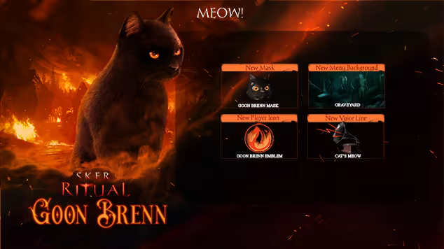 Torment Sker Island and all its inhabitants with the manifested spirit of Goon Brenn’s mask, wander among tombstones with the eerie graveyard as your background, haunt your friends with Goon Brenn’s exclusive in-game Cat’s Meow and show your belief in the folkloric phantom with the Goon Brenn Player Emblem.