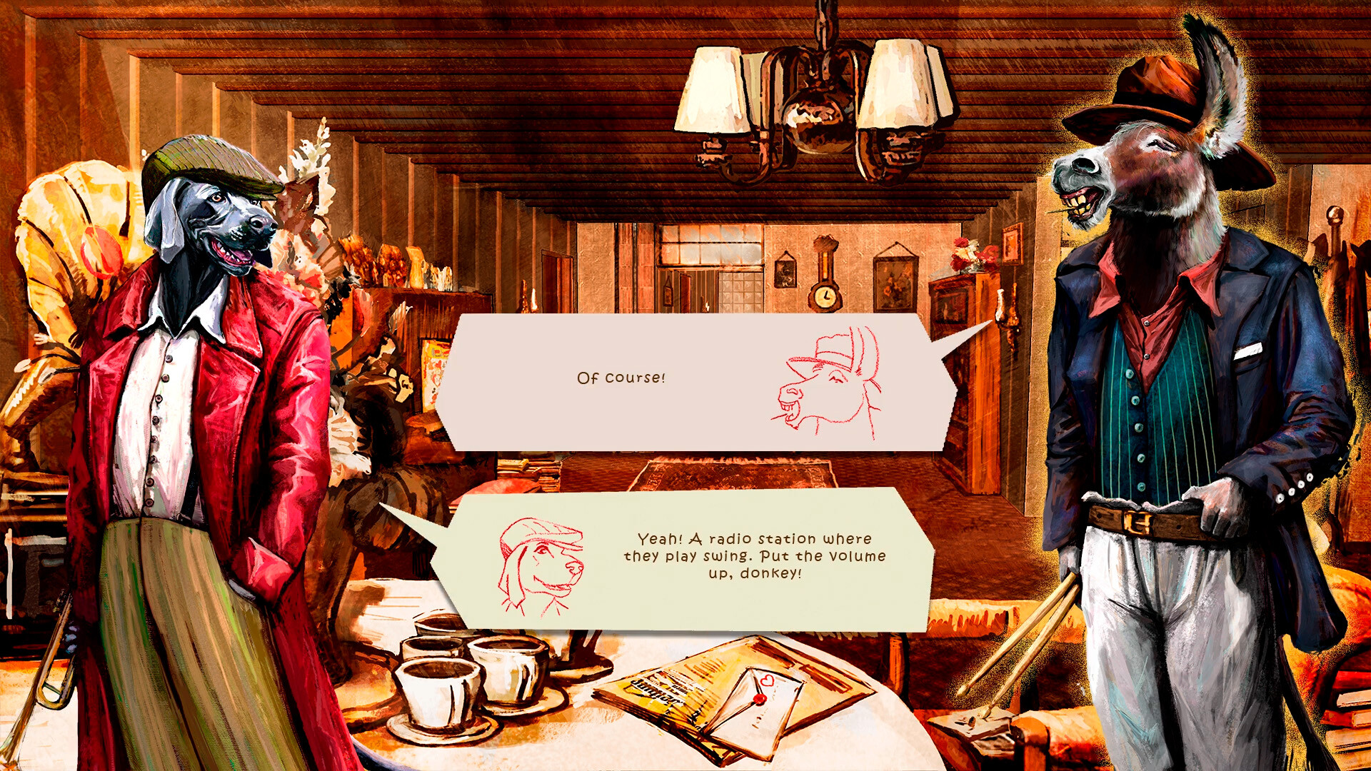 Bremen Hot Strings is a graphic adventure that adapts the original Brothers Grimm fairy tale "Town Musicians of Bremen" within the context of 1930s Germany under the yoke of Nazism.