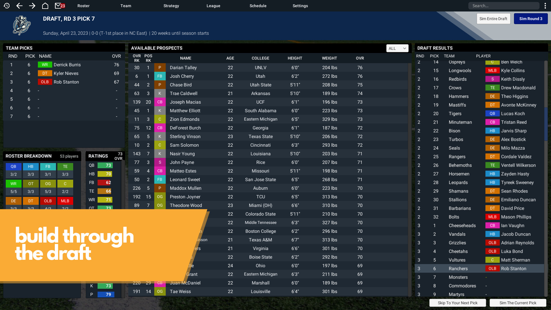 Draft future stars in a pro-style, seven round draft