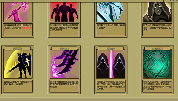 The monster effect in the game is colorful and unique. In order to allow players to match different card combinations, our set combination often requires a monster and several cards. In this way, we have several unique combinations in a card group, allowing players to play more freely and combine the desired card groups.