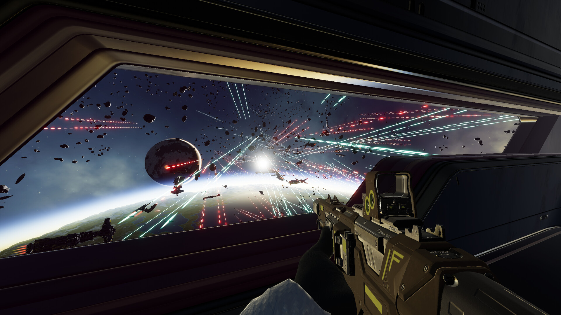 Spaceship dogfights, on-foot combat, boarding enemy cruisers.