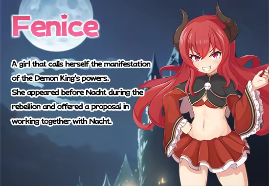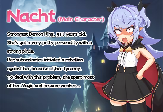 "Nacht-sama is quitting being the demon king!" is an RPG game produced by 地蔵サバイバルナイト and published by Hanabi games.