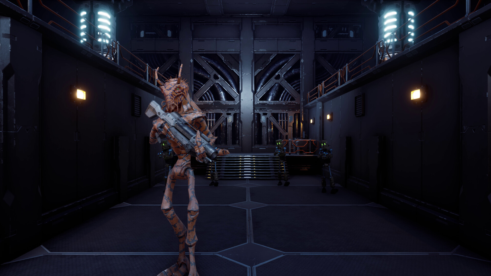 미래적인 무기를 사용하여 액션에 몰입하고 기민하게 움직여서 근접 공격을 가해보세요.