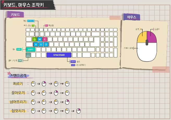 마우스의 좌 클릭, 우 클릭을 조합해 커맨드 공격을 사용할 수 있으며, 적의 공격 타이밍에 잘 맞춰 방어하면 패링이 가능합니다.