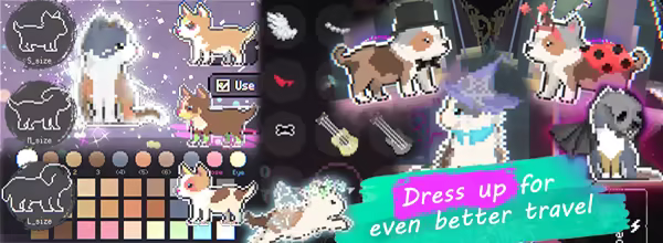100 가지 유형 x 다양한 색상으로 무한한 수의 독창적 인 편집. 옷을 입고 모험을 떠나십시오!
