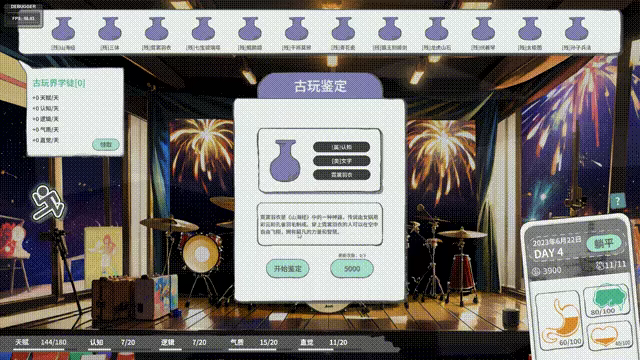 There is a certain success rate in the way of appraising antiques, and the success of the appraisal will increase the level and value of antiques. According to the level of antiques, players receive attribute rewards every day. This mechanism is mainly used as a narrative supplement and numerical compensation, using fixed output to reduce the impact of randomness.