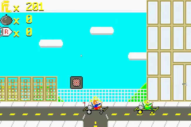 This game consists of a city broken up into many areas. There is a map screen which can only be accessed by tagging goals to finish an area or by entering an exit pipe. You move through areas looking for tokens and the leader of the Skidmarks, The Pork, in order to fight him.In this game you do not die. You are simply pushed around by your rivals and off platforms if you are high up. All their efforts can make you waste more time in an area. However, in some instances if you fall off a cliff you can end up in another area!