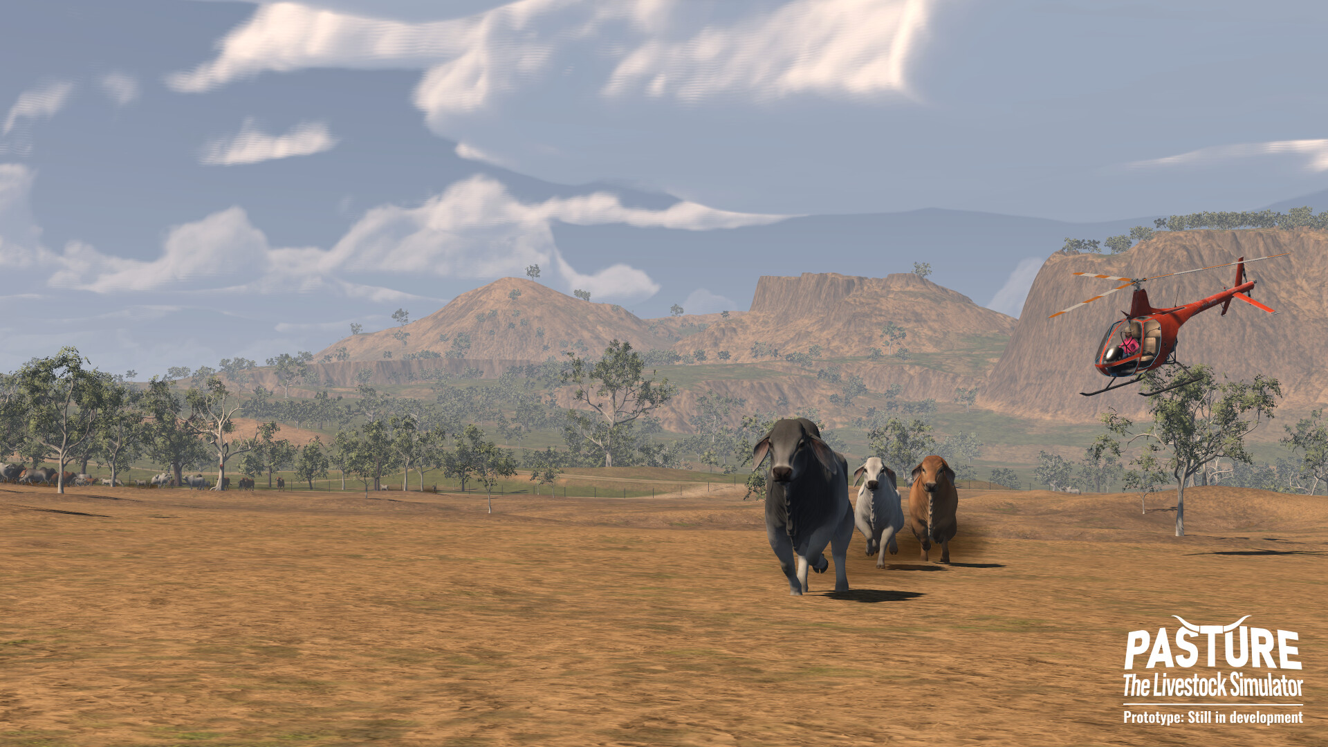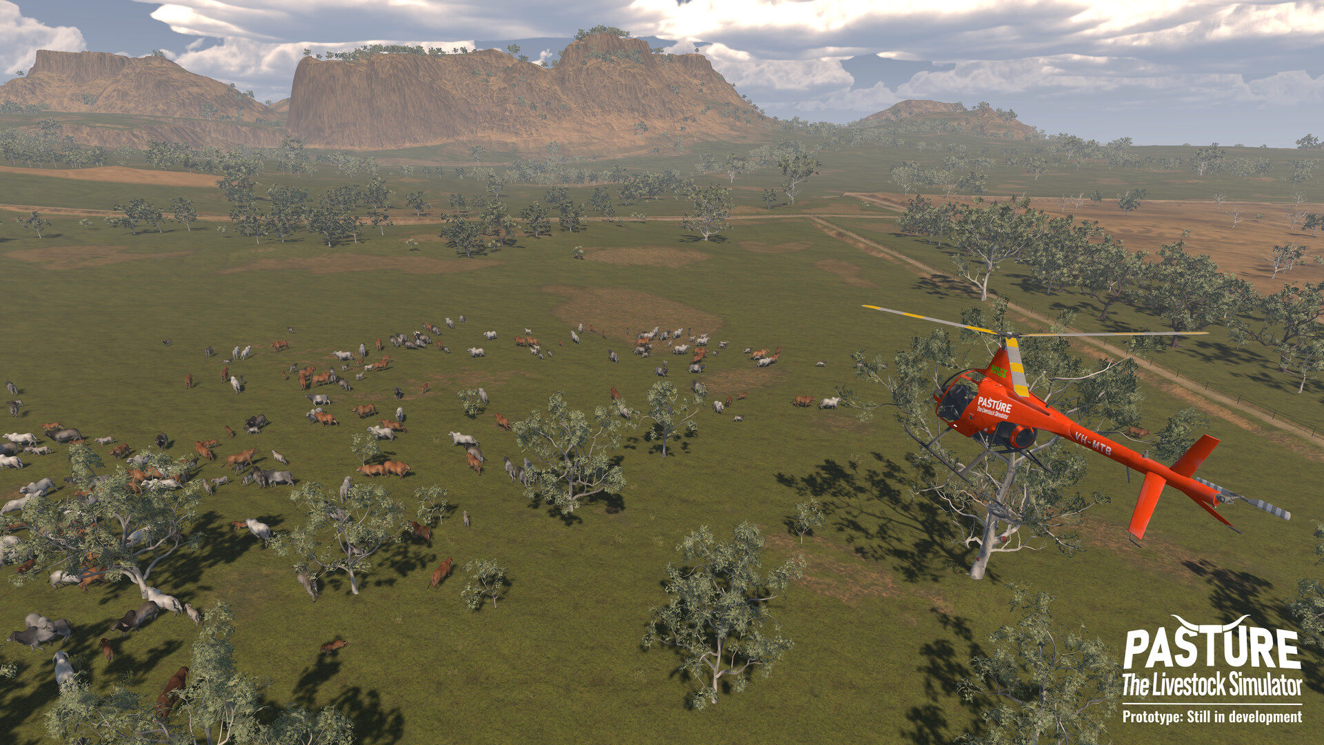 Pasture is an ‘Action’ farming simulator set in the Northern Territory of Australia. A homage to the rugged people who live and breathe the most challenging and exciting farming lifestyle in the world: Being an NT Pastoralist. Pasture allows gamers from all over the world to experience the highs and lows of being a pastoralist, doing battle with the weather, the markets, and mother nature herself to come out on top as they build their cattle empire. Make no mistake, without the vigilant stewardship of your property, your herd will escape, be predated upon, or perish. Clever management can cause your herd to flourish, your infrastructure to be sound, and your bank account to blossom. This sim lets nature take course whether you are watching it or not. There are the old ways to do things, which you will be taught, but there is always new ground to be broken, and your innovation can mean the difference between boom and bust.