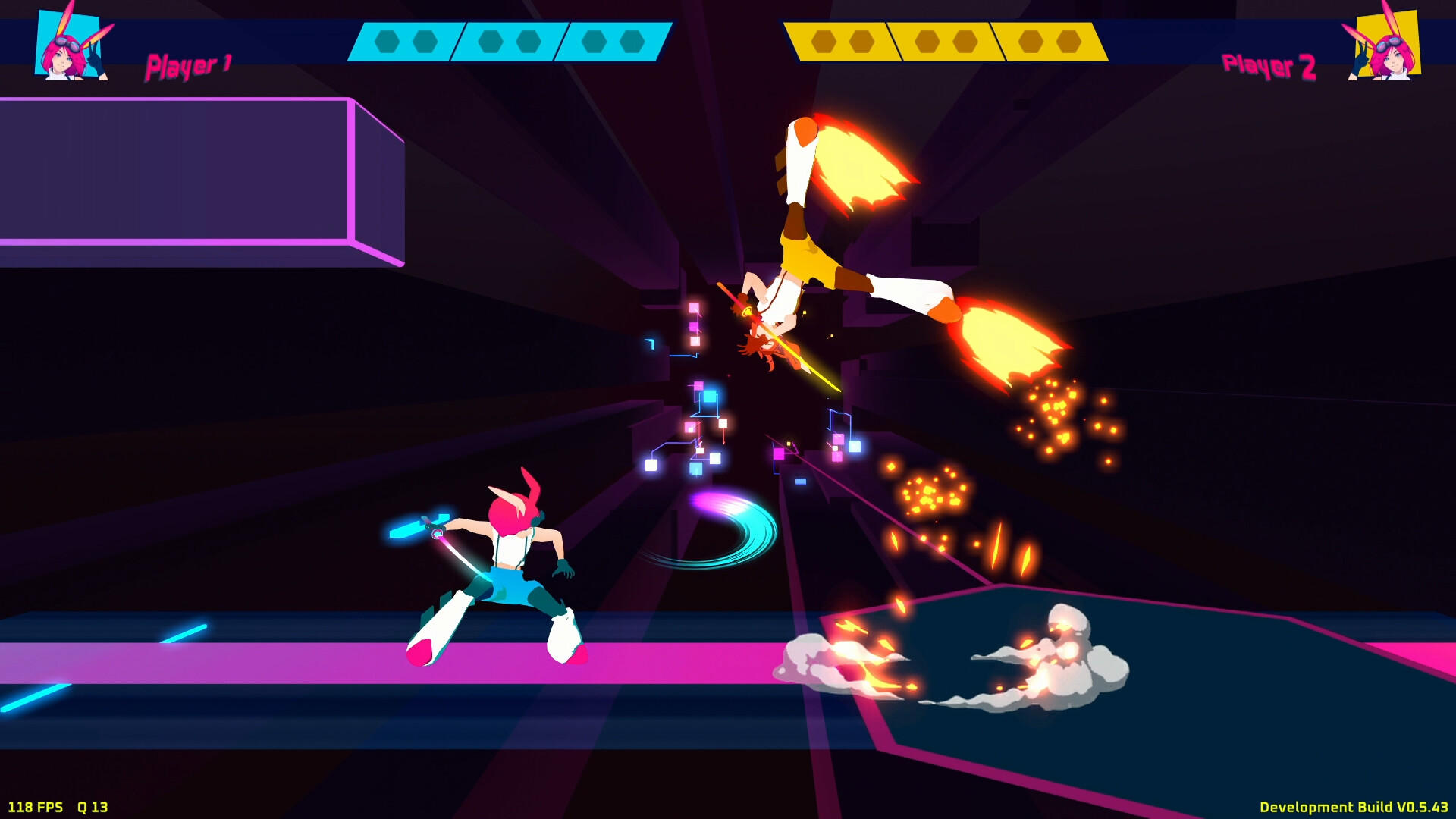 Street Fighter meets Nidhogg in the best game to introduce fighting games to your friends that don't play fighting games. Cross the goal to win the match, use the platforms to position yourself strategically, react quickly, KO your opponent, and run as fast as you can. Rollback Netcode.