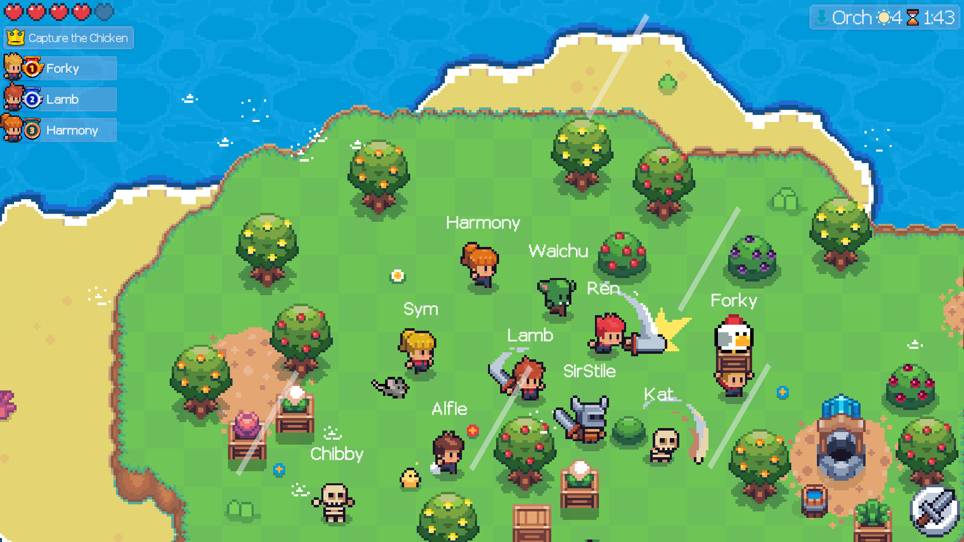 Frenemies는 최대 10명의 플레이어가 무인도에 갇히게 되어 궁극적인 생존과 배신의 시험을 치르는 귀여운 멀티플레이어 게임입니다. 인기 TV 쇼 서바이버(Survivor)에서 영감을 받은 사회적 속임수 게임에서 기지를 건설하고, 동맹을 맺고, 전투를 벌여 최후의 플레이어가 되어보세요.
