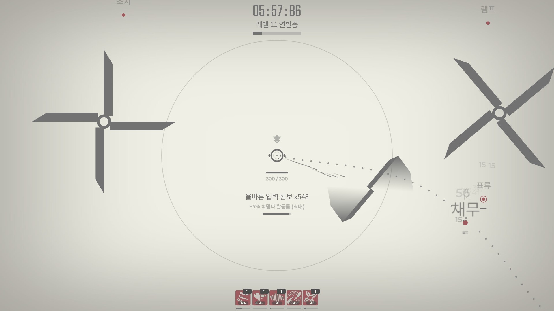 타자 연습이 무리로부터의 생존을 만나는 빠른 템포의 로그라이트에서, 당신의 속도와 정확도, 전략이 시험대에 오르게 됩니다. 최소주의적인 아레나에 발을 들이고, 당신의 타자 실력과 듬직한 키보드를 이용해 전장을 지배하세요.