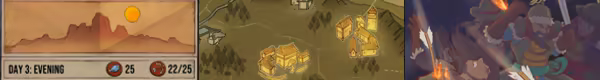 - Set the Agenda: Manage time, assign tasks, and prepare for war by training fighters, gathering supplies, and sending scouts across the island using the Requisition system.