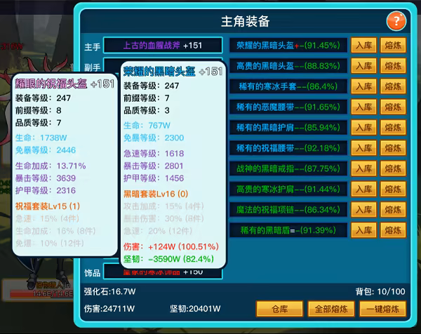 可以将不需要的装备熔炼获得强化石,运气好还会获得新的装备。使用强化石可以强化装备基础属性,更换装备保留强化等级。