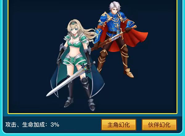 战斗胜利有概率获得伙伴,两个同名伙伴可以合成一个更高级别的伙伴。不同级别副属性不同,虽然主属性按照比例继承主角,但是可以自由分配属性点和配置技能。