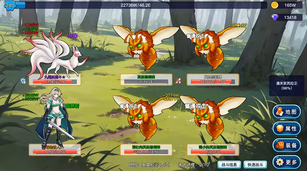 游戏内的英雄会自动战斗,战胜10波小怪后可以挑战本关首领。战胜怪物有概率获得金币、装备、技能碎片、伙伴和钻石等。