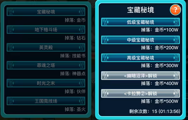 战胜对应副本首领后可以获得金币、钻石、技能、伙伴等。每个副本每4小时增加一次挑战次数,最多保留20次。