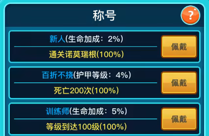 完成对应任务可以解锁称号,称号附加的属性永久生效。