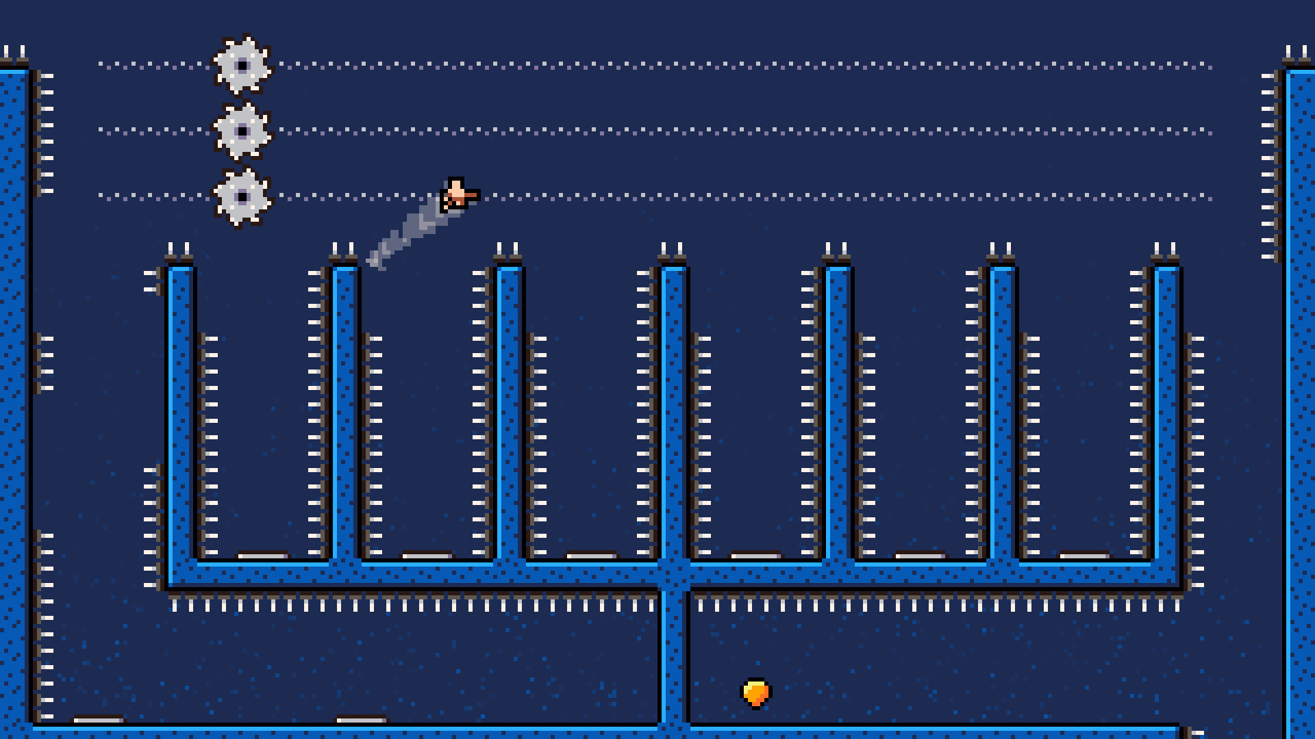 There are no checkpoints! Either you're good and reach the end, or you make a mistake and go back to the beginning of the screen, but this time better than before. Believe me, winning after making a few mistakes is very satisfying, just like in real life.