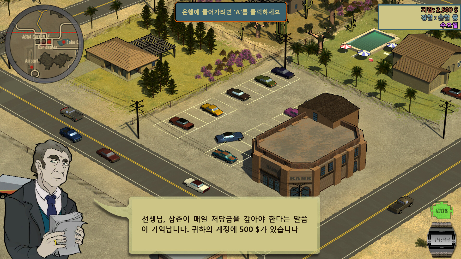 "새들 업 앤 드라이브(Saddle Up and Drive)"는 1970년대를 배경으로 한 게임으로, 당신은 알코올 중독으로 인해 빚에 쪼들리는 옛날 자동차 운전사의 무모한 조카로 플레이하게 됩니다.