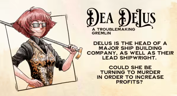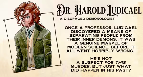 - A journal which keeps track of a colorful list of suspects and lore