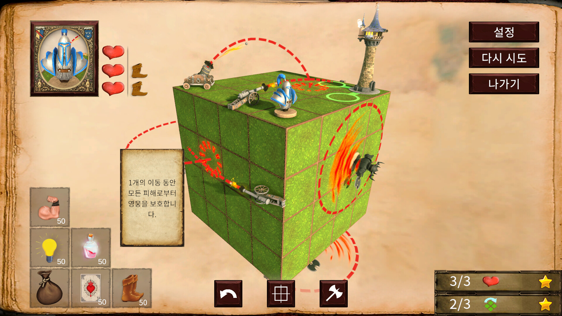 같은 색의 성벽을 일렬로 세워 주민들을 위험에서 구하세요.