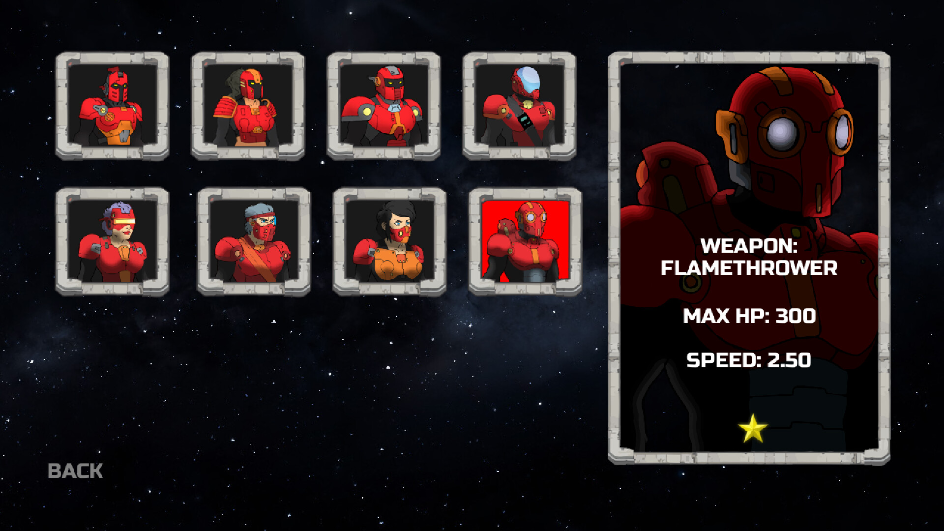 - 고유한 무기, 특수 공격, 그리고 능력치를 가진 8명의 독특한 캐릭터