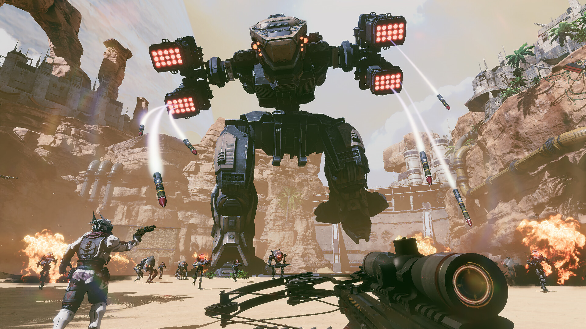 아이언샌드는 사막 행성을 배경으로 강력한 빌드와 팀워크가 모든 것을 좌우하는 협동 타이탄 사냥 FPS 로그라이트 게임입니다