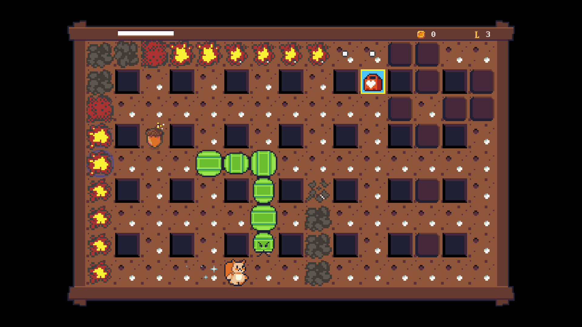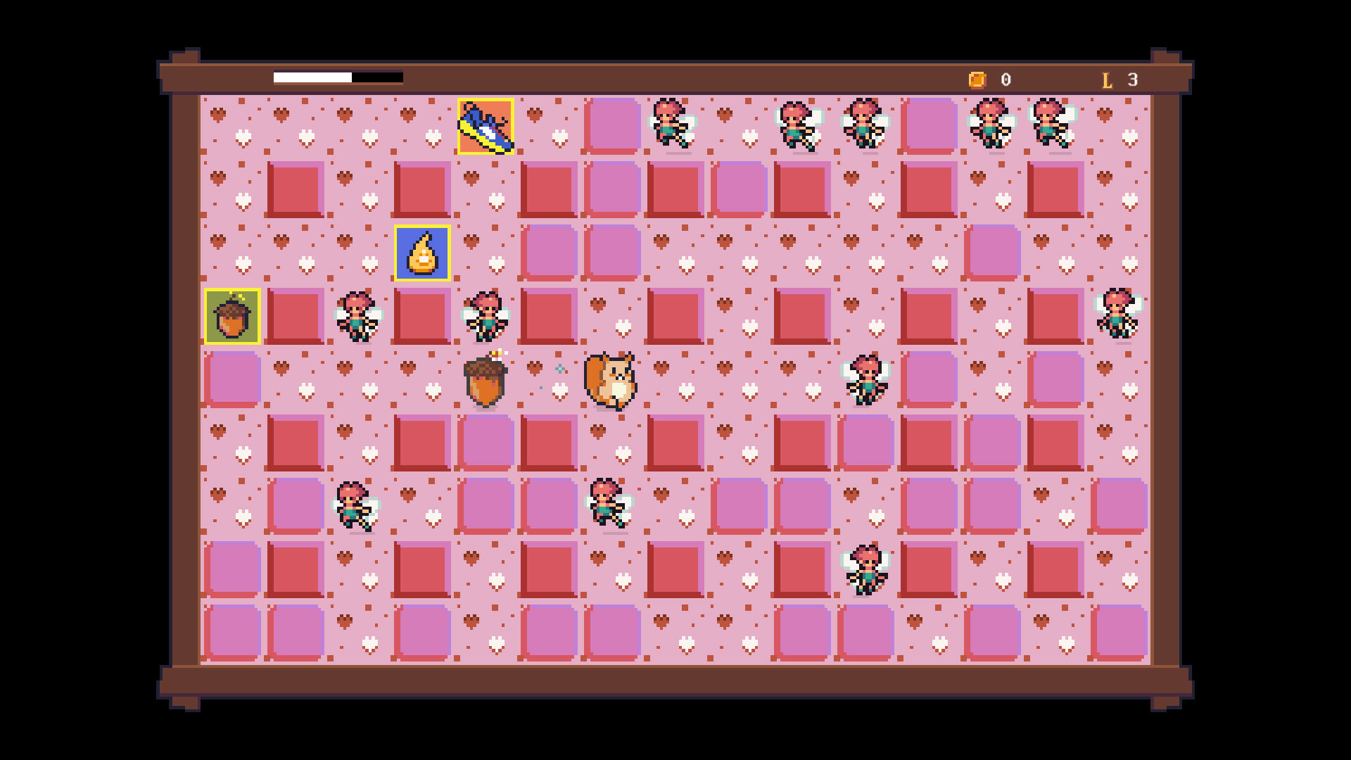 Drop bombs, blow up blocks and battle enemies in this grid based squirrel nut frenzy.Use the power-ups at your disposal to clear your way to victory.
