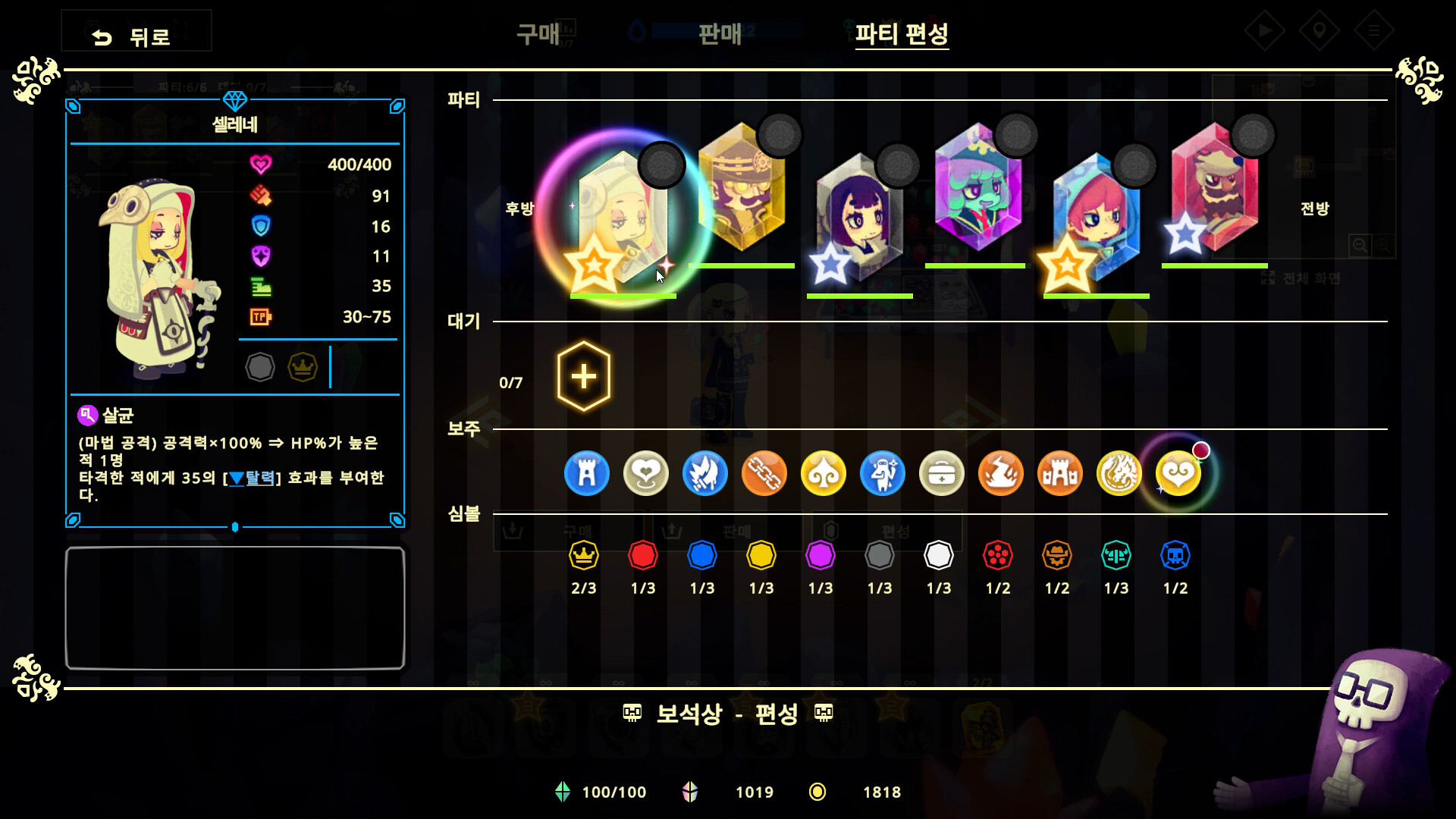 씹덕 로그라이크 덱빌딩 오토배틀러 2편 전작의 그림체와는 많이 달라졌으니 이제 씹덕은 빼야할듯 한 마디로 평하자면 그냥 비비드 나이트 2편임 전작과는 기물도 달라지고 심볼 능력도 달라지긴 했는데 기본적으로 심볼 시너지 모으는 방식이 비슷하고 층 보상으로 주는 소지골드 15% 증가 효과 풍요의 뿔과 마테리얼 15% 더 주는 스티커 의존도가 높아서 속칭 '존버 플레이'로 고착화됨 판당 1~2시간 정도 걸리는데 시간이 제법 걸리는 게임이기 때문에 게임오버 당하기 싫어서 그런 거 같기도 함 던전 많아진 거는 호불호가 갈릴 거 같은데 일단 모든 기물 해금되기 전까지는 좀 지겹기는 했음 도전과제는 심볼2레벨 올리는 것과 전 기물 금별 만들기 모든 던전 클리어가 있는데 전 기물 금별 만들기는 상점에서 도르마무가 되니 활용하면 도움이 많이 됨 Roguelike Deck Building Auto Battler Part 2 In short, it's just Vivid Knight Part 2. While the units and symbol abilities have changed compared to the previous game, the basic symbol synergy mechanics are similar. The reliance on the Horn of Abundance, a reward for each floor and the 15% material bonus stickers makes the gameplay similar. The increased dungeons will likely be a mixed bag, but it was a bit tedious until all the units were unlocked. The achievements include leveling up symbols by two, making all pieces gold stars, and clearing all dungeons. The gold star system for all units can be saved in the shop, which is very helpful.