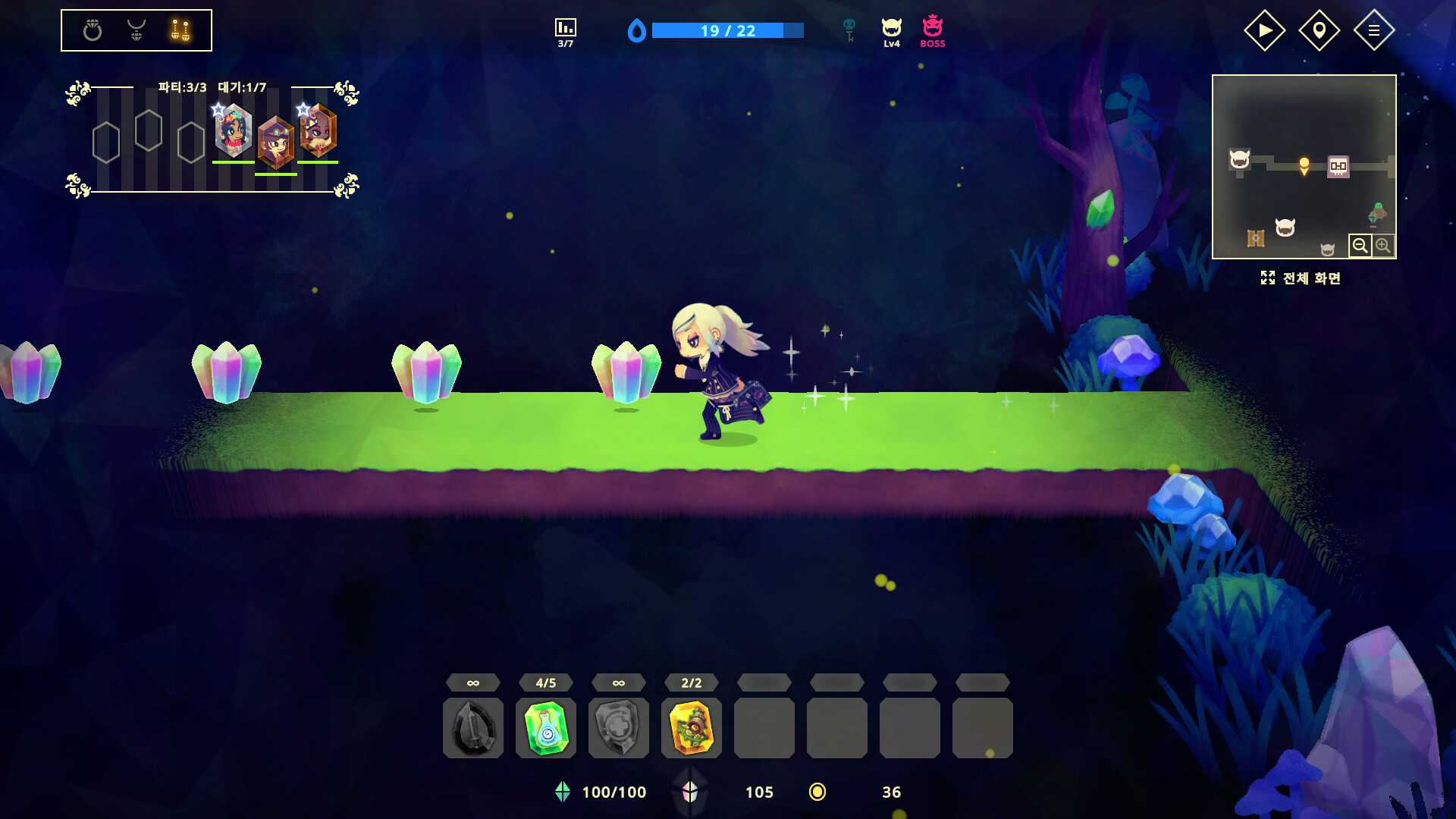 보스(?) 잡은 거 같으니까 리뷰 + 캐릭터 귀엽고 재밌는데 전체 해금이 너무 늦고 캐릭터가 좀 심하게 많은 느낌. 제작사 측도 아는지 은별(1성 짜리 3개 합침)만 찍어도 시너지가 적용되게 해 놓은 덕에 몇 몇 캐릭은 시너지 띄우기 용도로만 소모됨. 좋게 말하면 안 필요한 캐릭터가 없고, 나쁘게 말하면 실질적으로 쓸 만한 캐릭터가 적다? 오토체스 스타일 로그라이트인데 특이하게 플레이어도 전투에 참여할 수 있음. 기물로 참여하는 건 아니고 보석을 써서 공격/방어/회복/버프 등 지원 해 줌. 보석은 각자 쿨이 있고, 모든 보석들의 쿨이 0이 되면 그냥 기물들이 자동으로 싸우는 방식. 초반엔 보석이 좀 더 쌔다만, 기물이랑 시너지가 갖춰지고 나면 보석이 보조 해 주는 느낌. 기물 중에 보석 강화 해 주는 시너지가 있기도 한데 어차피 기물이 다 죽으면 게임 오버니까 기물에 좀 더 신경 쓸 수 밖에 없는 거 같음. 시너지가 너무 너무 너무 많음. 종족/색상으로 있는데 종족 끼리만 시너지를 받는 게 아니라 시너지 활성화를 시켜 두면 전 캐릭터가 받을 수 있어서 기물 짜는 자유도는 좀 높은 편. 초반엔 막 섞기 보다 같은 색 or 종족 기물 2~3개씩 넣고 진행하다가 뒤로 갈 수록 파워 쎈 기물로 변경 -> 나머지는 시너지용으로 갈아타는 게 좋은 거 같음. 맵을 돌 때 마나 라는 필드 자원을 소모해서 1칸씩 넘어가는 방식인데 이게 은근 계산하기 까다로움. 기본 적재량(노업글시 6/6)을 넘으면 확률적으로 마나가 추가적으로 깎이는데 맵이 꽤 타이트 한 편이라 랜덤 이벤트로 마나 수급 이벤트가 뜨지 않으면 계산을 잘 해야 하는 편. 마나가 0이 되면 이동 할 때 마다 대미지를 입으니 주의. 게임 난이도는 일반 스토리 깨는데 기준 그렇게 높지 않은 느낌. 시너지와 스탯에 대한 이해만 있으면 일단 다 깰 수 있게 만들어놨음. 보석을 적절하게 사용하는 것도 중요함. 막보 전에 몇 번 전복되서 시간이 오래 걸린거지 내가 똑똑했으면 더 일찍 깼을뜻.. 불만이라면 층수가 너무 짧은 편이라 금성(은성 3개 합침)까지 찍은 트라이가 별로 없음. 어차피 은성 정도로 깰 수 있게 만들어 놓은 밸런스라 너무 금성에 집착하지 않아도 된다만. 그리고 층이 짧은 편이라 약간 강해졌나? 싶을 때 쯤 마지막 보스가 나오니까 강해진 뽕맛을 느끼기 좀 어려운듯. 위에서 말했듯 너무 약한 기물들이 많은 것도 아쉽다잉.