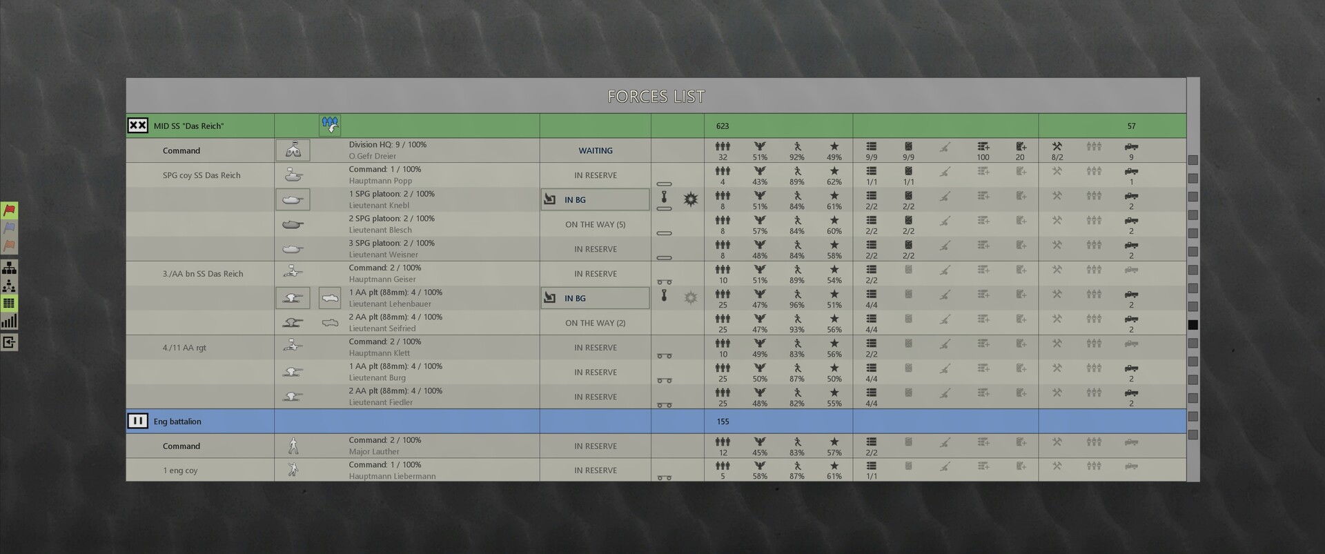 - Historical organizational structure of units at the time of the operation.