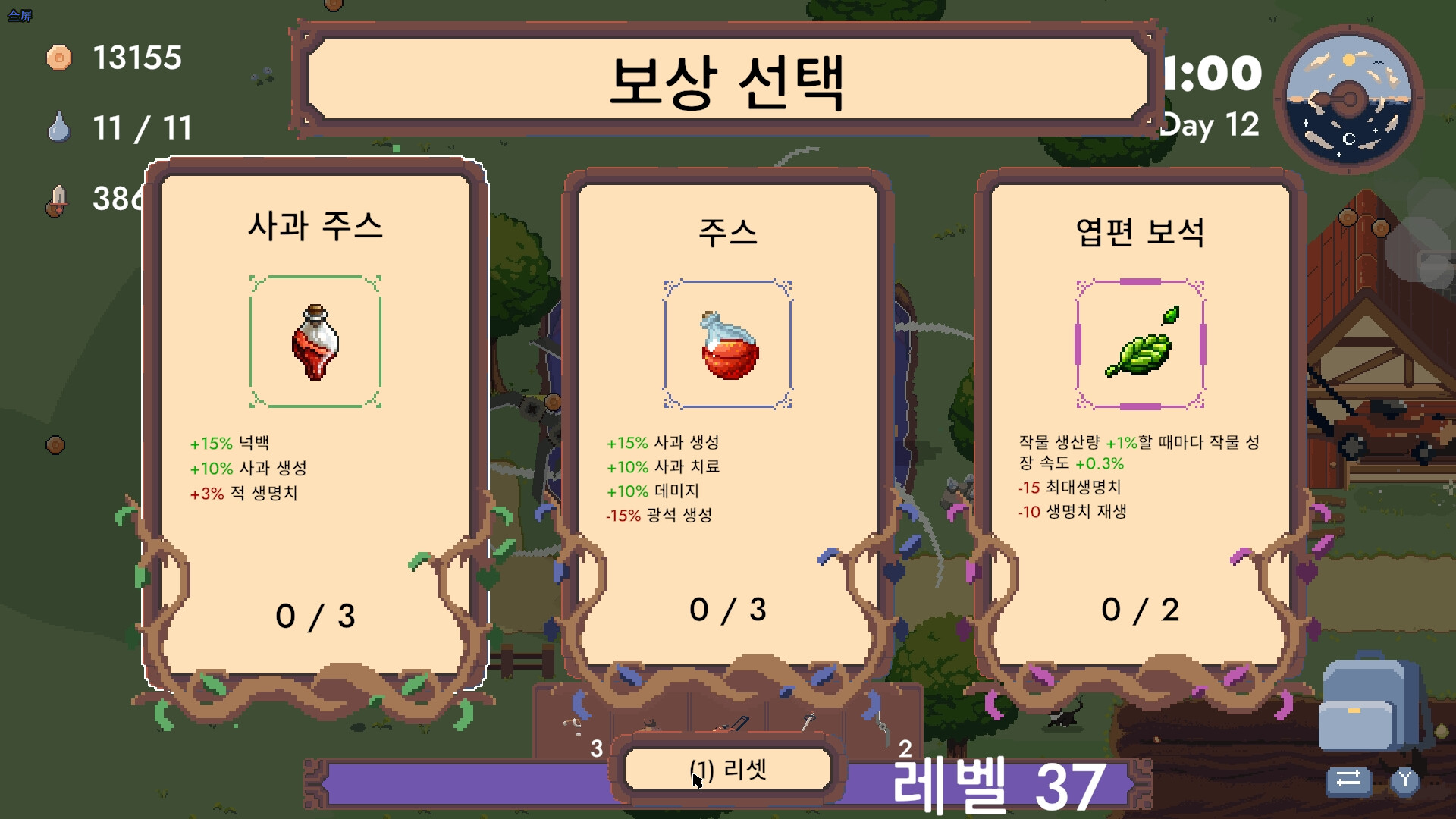 각 전투 종료 후 풍성한 보상을 획득할 수 있습니다. 이 보상으로 더 강력한 보조 능력을 획득하여 다음 전투를 수월하게 준비하거나, 농장을 꾸밀 수 있는 장식품과 가구를 구매할 수 있습니다. 이를 통해 당신의 농장은 더욱 생동감 넘치는 공간으로 변모할 것입니다.