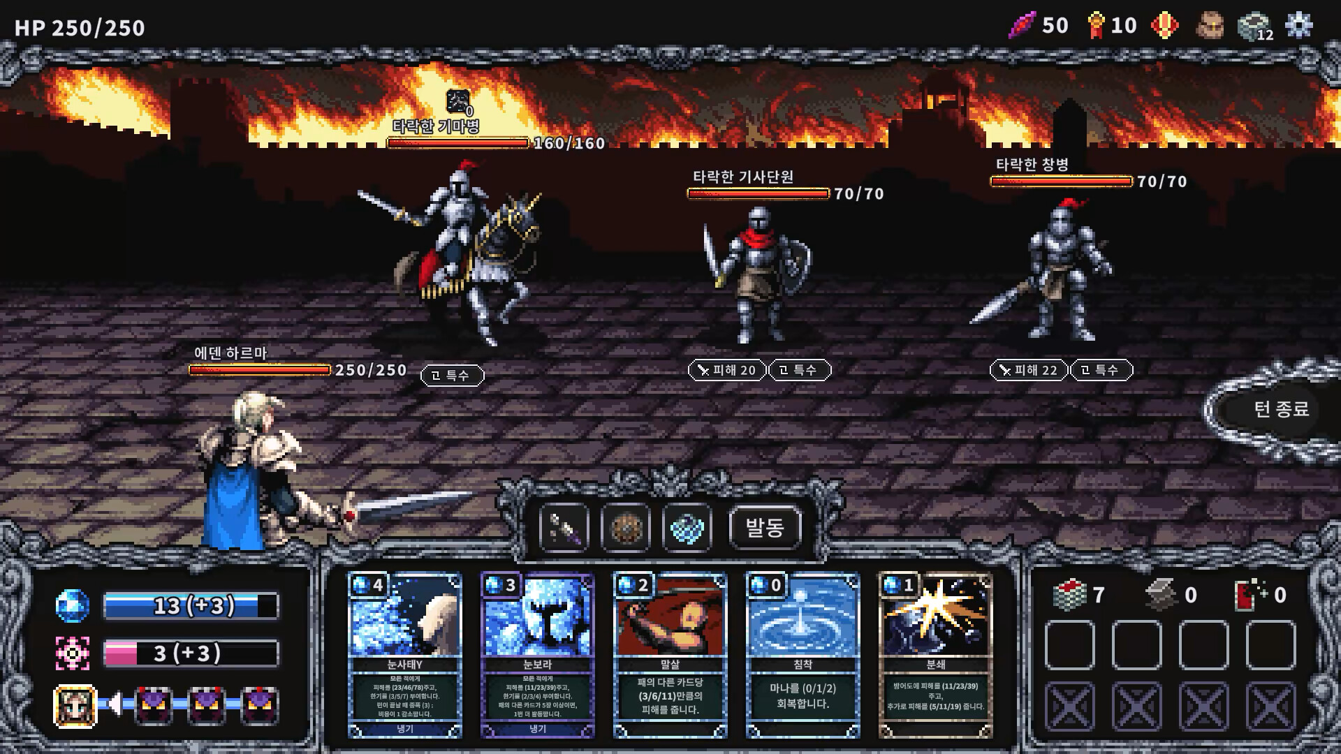 「하르마:망국의 에덴」은 스토리 모드를 갖춘 다크판타지 로그라이크 덱빌딩 게임입니다.