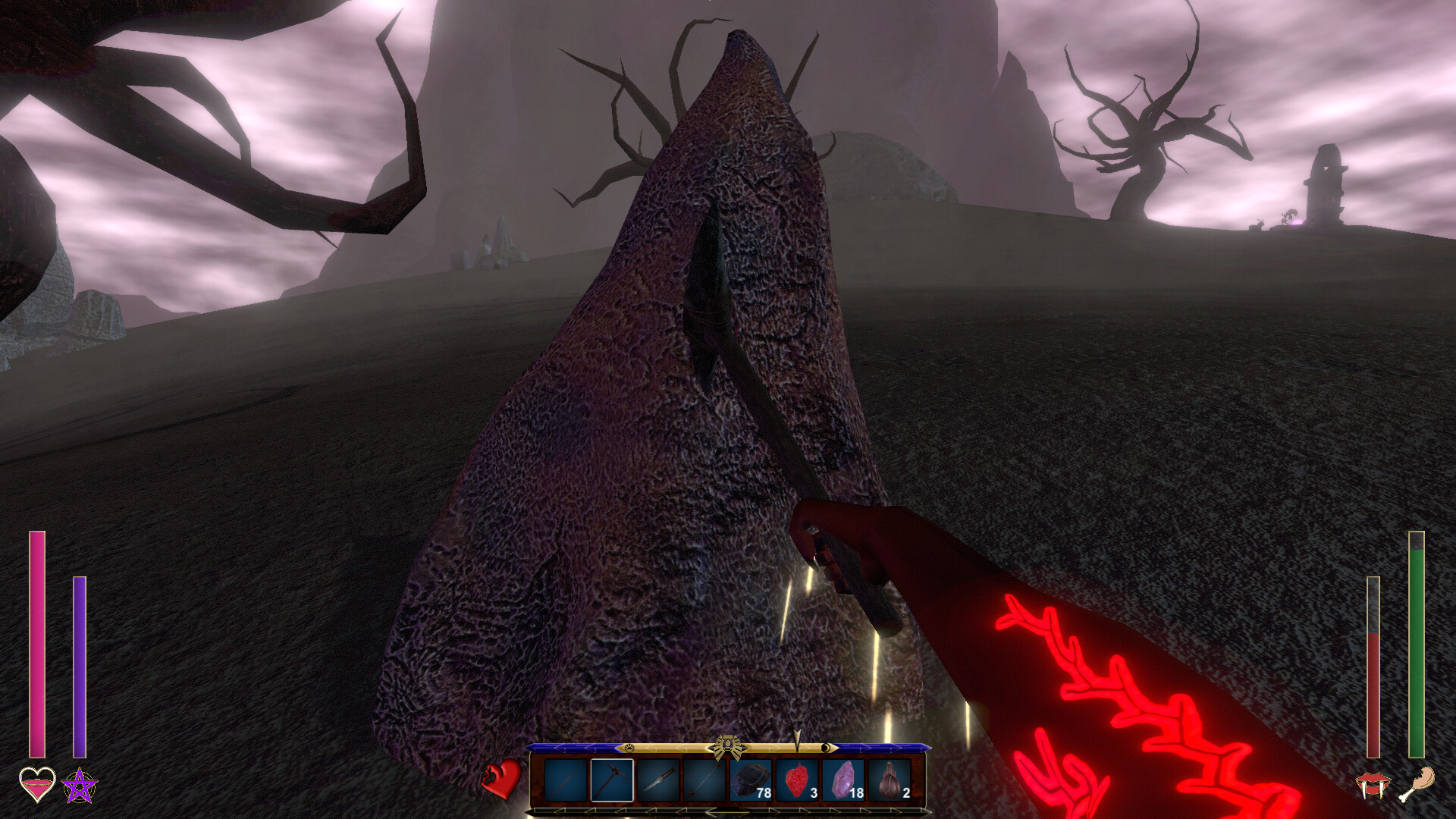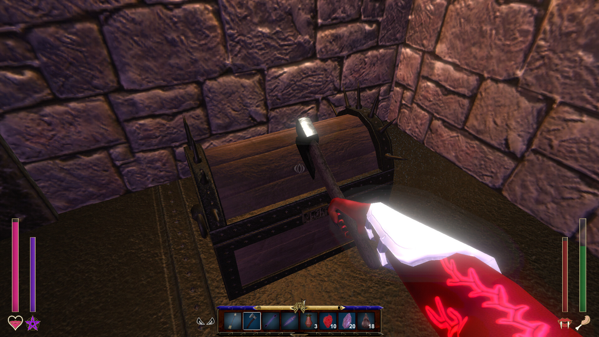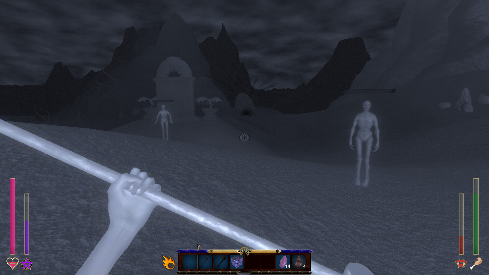Manage your hunger, blood, and mana to stay alive. Beware the Tormented Souls — near-unkillable predators that haunt the night.